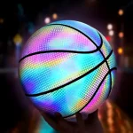 Pelota de baloncesto reflectante holográfica colorida de cuero PU resistente al desgaste juego nocturno calle baloncesto brillante